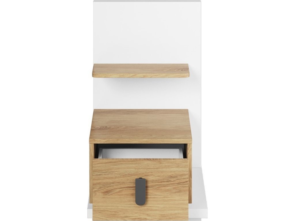 CASA 73033 Noční stolek se zásuvkou a policí v jemném přírodním stylu. Korpus je vyroben z desky LTD v barvě bílá, zásuvka a police jsou vyrobeny z desky LTD v barvě ořech natural. Provedení na pravou stranu v kombinaci s postelí MN-09P. Dodáváme v demontovaném stavu.