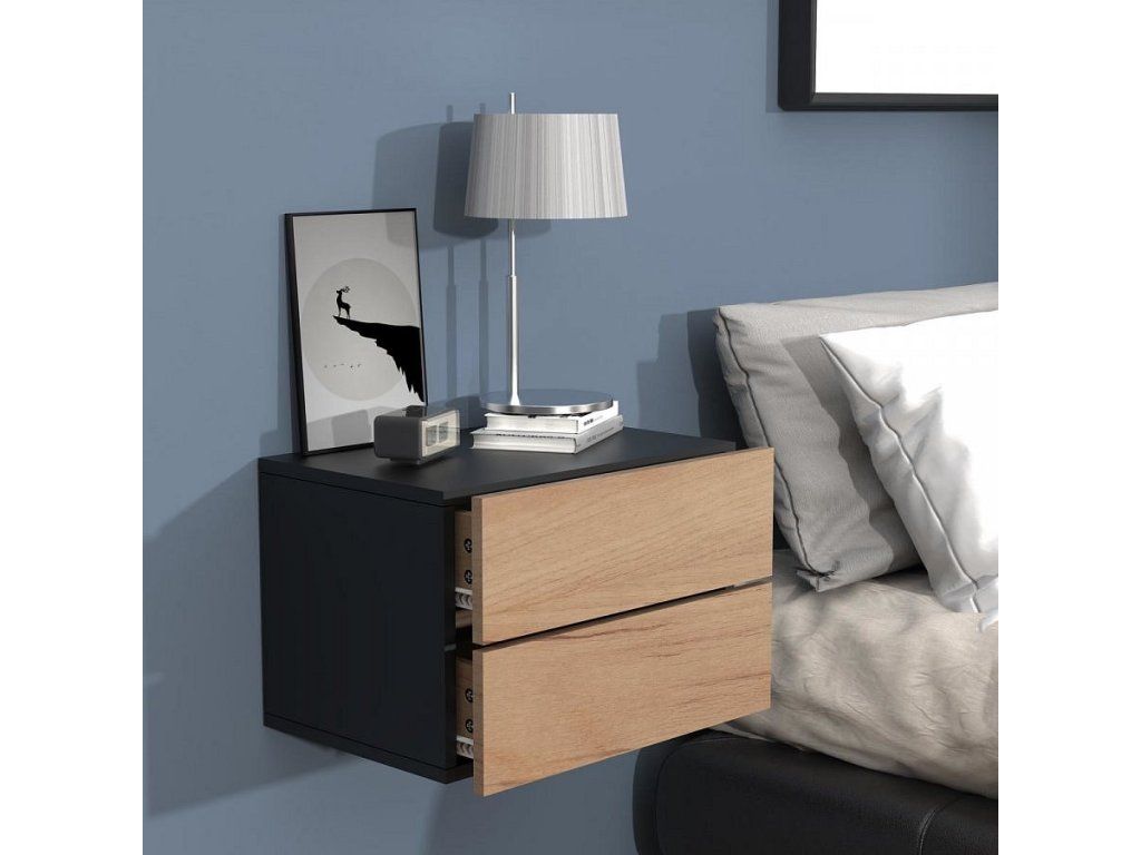 Tento moderní nástěnný modul VCM Usal je ideální jako závěsný noční stolek nebo praktická závěsná police do jakéhokoli interiéru. Nadčasový design se hodí do většiny stylů a perfektně doplní nábytek do ložnice. Díky horní odkládací ploše a dvěma zásuvkám nabízí dostatek místa na drobnosti, takže poslouží jako noční stolek s úložným prostorem i jako elegantní noční stolek s šuplíkem. Stabilní montáž na stěnu šetří místo a vytváří lehký, vzdušný dojem. Modul lze kombinovat s dalšími prvky série VCM Usal.