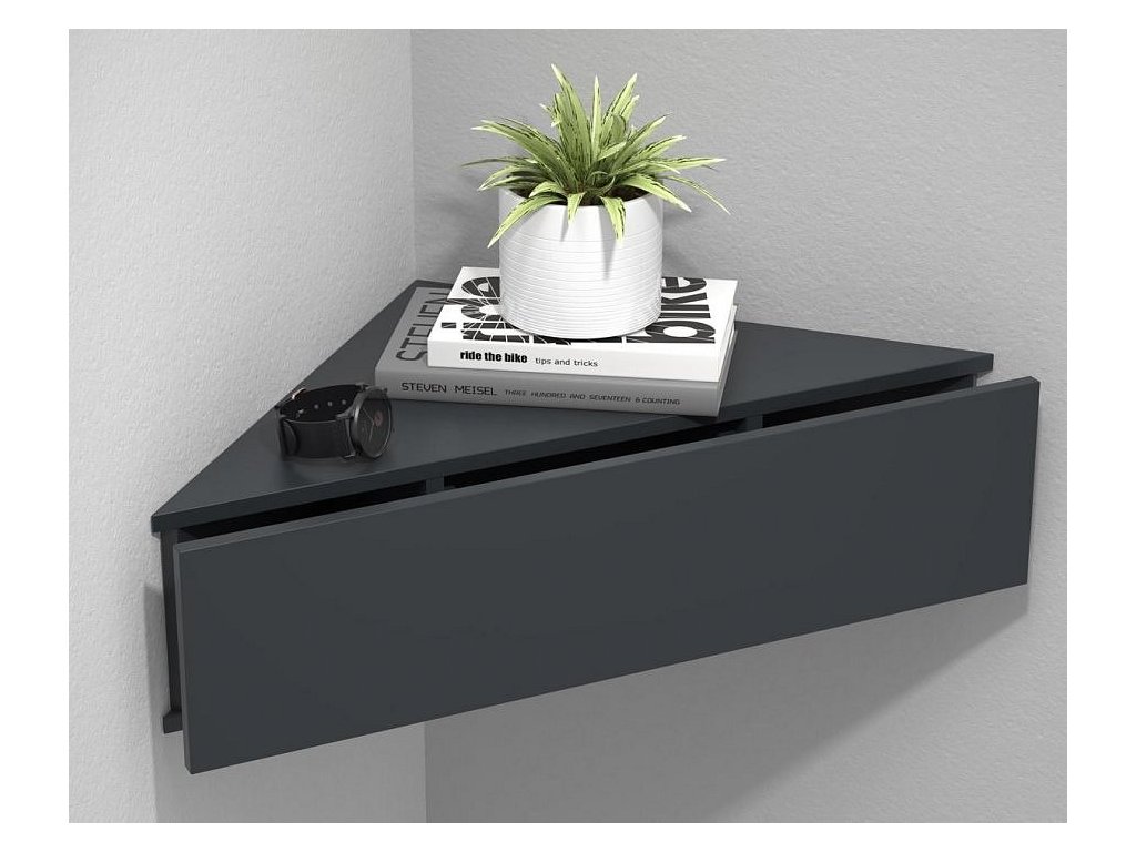 Rohová nástěnná police VCM Usal kombinuje jednoduchý design s praktickým využitím. Police poskytuje odkládací plochu pro drobnosti, zatímco zásuvka nabízí diskrétní úložný prostor.