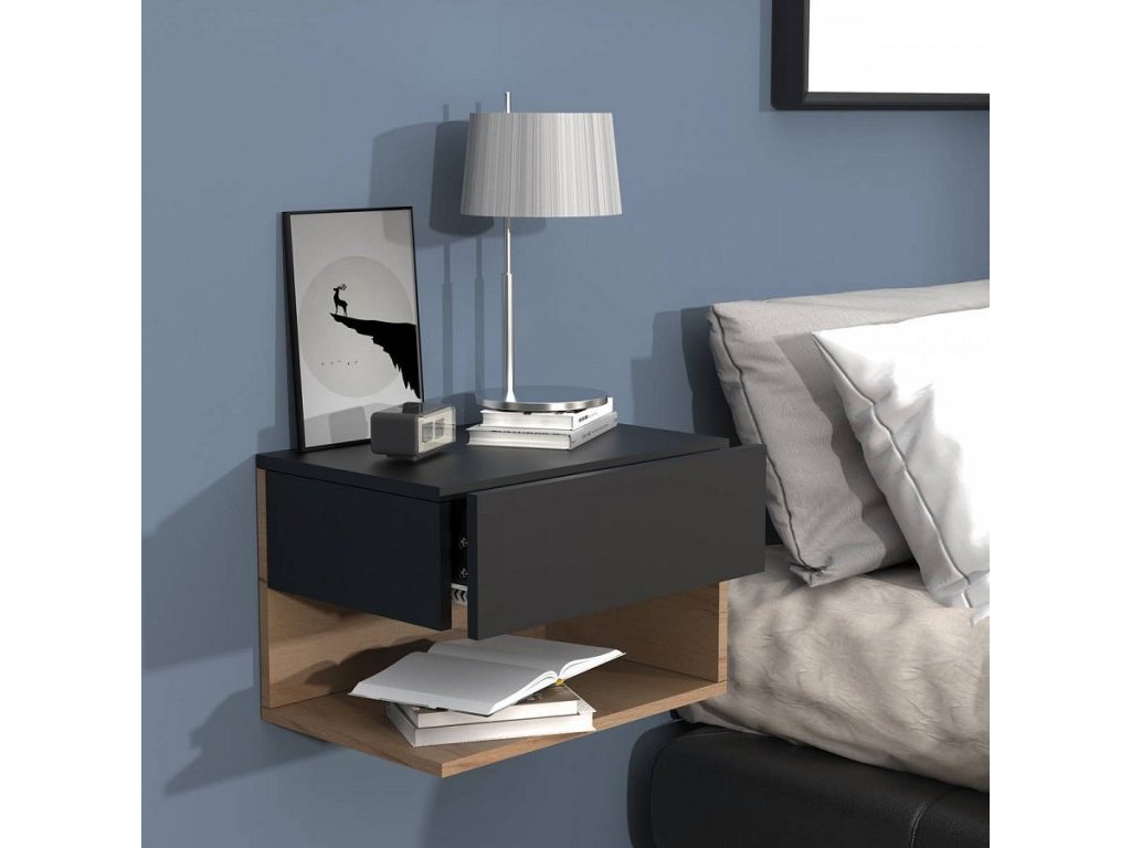Montáž na zeď je stabilní a jednoduchá, což z nočního stolku činí ideální závěsný noční stolek s úložným prostorem, který šetří místo a usnadňuje úklid pod nábytkem. Stolek lze navíc kombinovat s dalšími prvky ze série VCM Usal a vytvořit tak jednotný interiér.