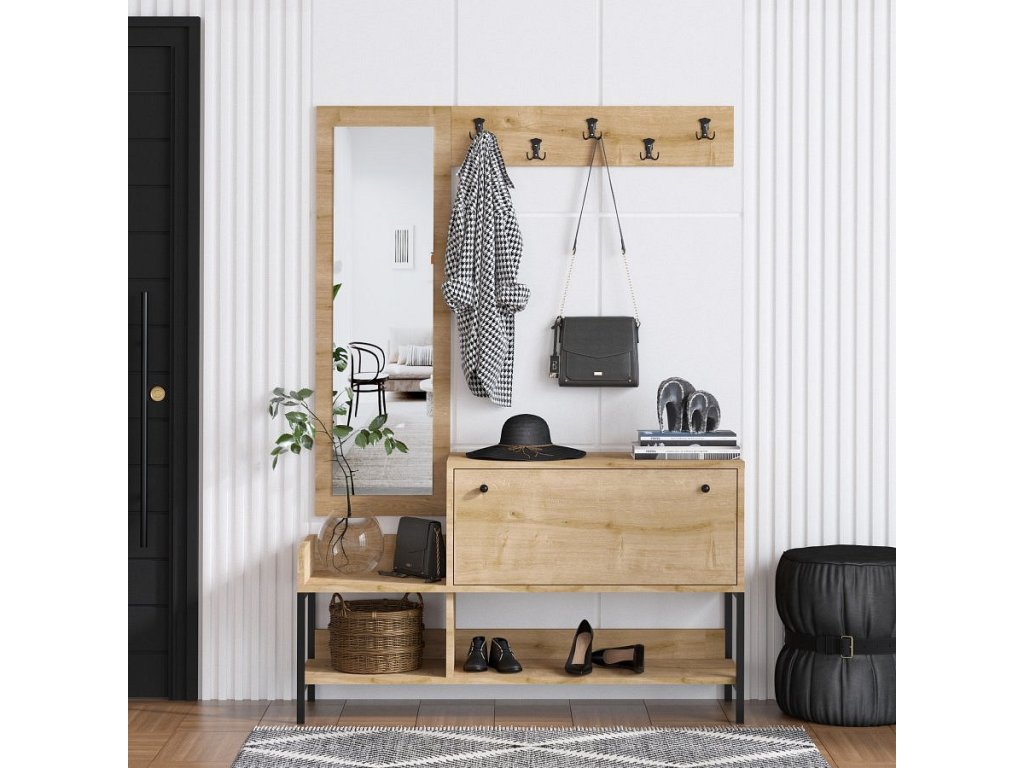 Už žádné hledání perfektního páru bot! Naše předsíňová sestava je vybavena řadou polic, které poskytují dostatek prostoru pro úhledné uložení veškeré vaší obuvi. Závěsný věšák na kabáty o šířce 80 cm vám umožní pohodlně zavěsit kabáty a bundy.