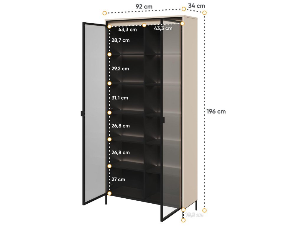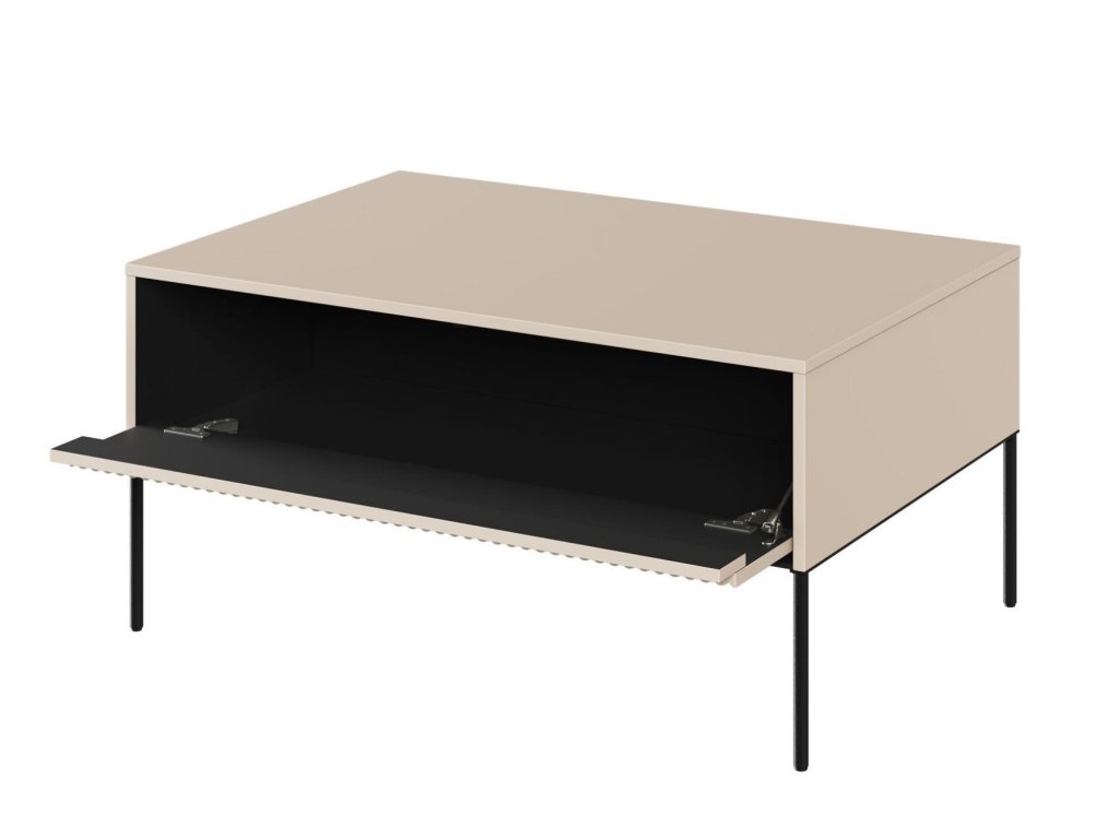 Kovové štíhlé pevné nožky černé barvy dodávají nábytku lehkost.