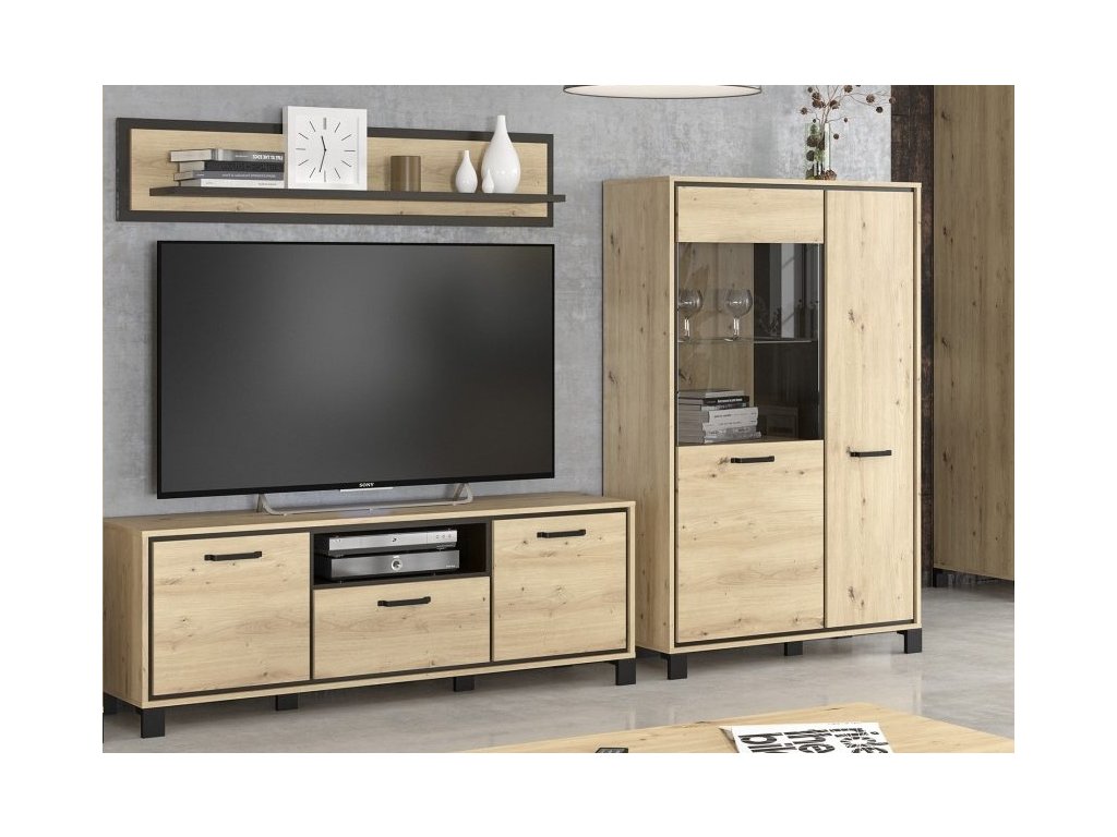 Obývací sestava SET2 BUCKET (vitrína, TV stolek, police) dub artisan/wenge