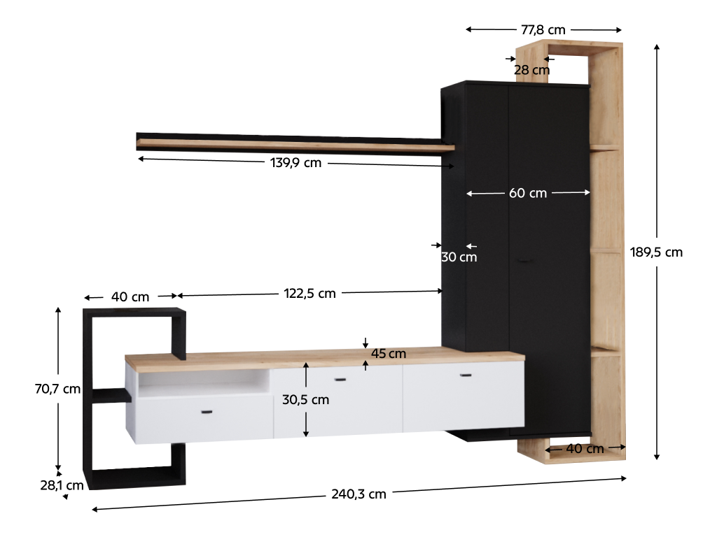 Rozměry (ŠxHxV): 240,3x45x189,5 cm