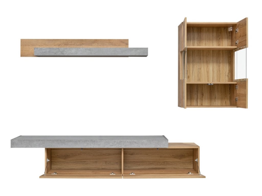 Obývací stěna, sestava CONCRET s LED osvětlením, dub riviera/beton