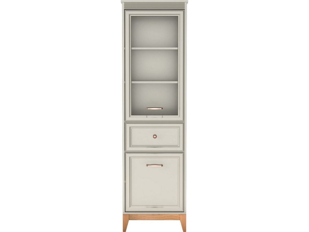 Sestava se skládá - jednodvéřová vitrína, dvoudveřová vitrína a televizní stolek. Kvalitní výsuvy (soft close) a panty s tichým dovíráním se postarají o každodenní komfort. Rozměry viz obrázky.