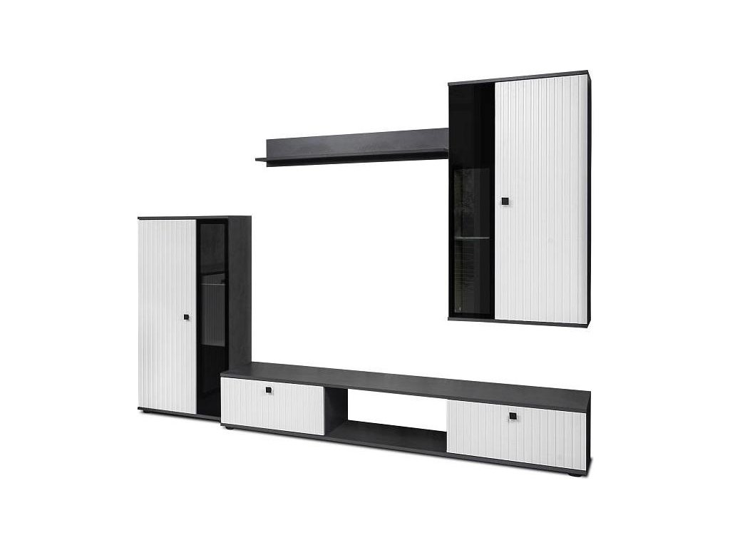 CASA 87009 Moderní obývací stěna, která si zakládá na nejnovějších trendech bydlení. Nábytek je vyroben z kvalitní desky LTD v barevném provedení bílá/matera. Sestava se skládá ze dvou vitrín, televizního stolku a police a prodává se pouze jako sestava. Prostor pro televizi je - výška 91 cm, šířka 132 cm. Dodáváme v demontovaném stavu.