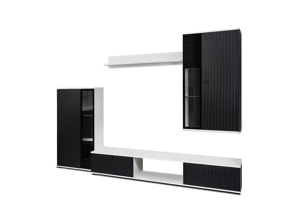 CASA 87009 Moderní obývací stěna, která si zakládá na nejnovějších trendech bydlení. Nábytek je vyroben z kvalitní desky LTD v barevném provedení černá/bílá. Sestava se skládá ze dvou vitrín, televizního stolku a police a prodává se pouze jako sestava. Prostor pro televizi je - výška 91 cm, šířka 132 cm. Dodáváme v demontovaném stavu.