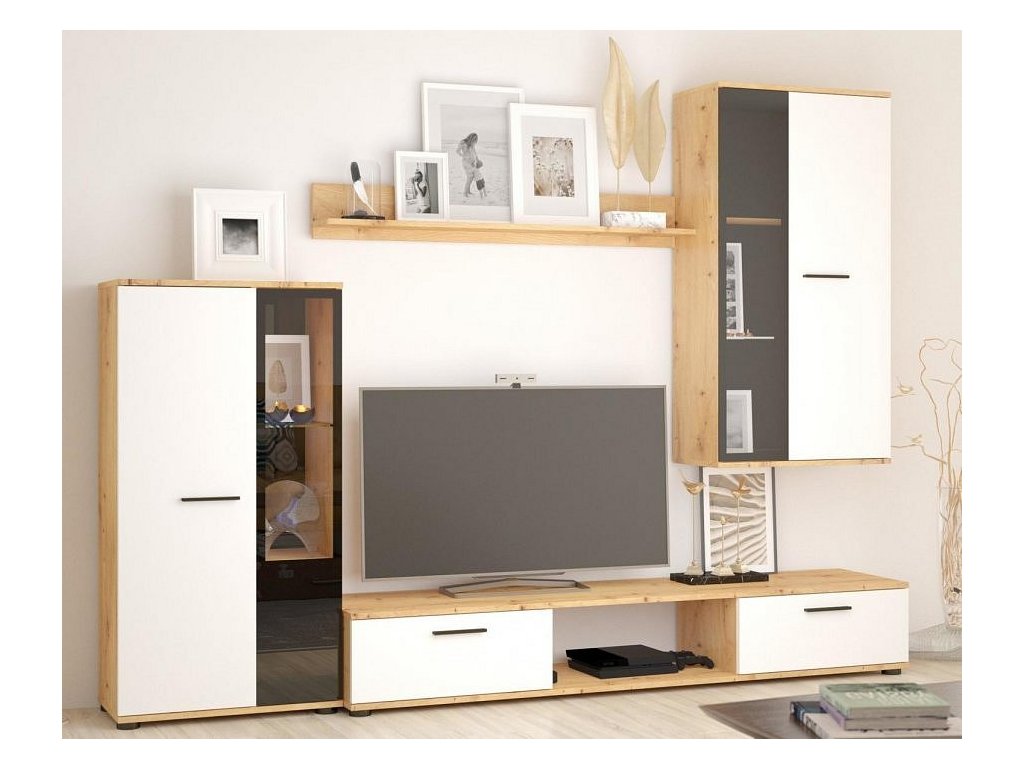 Obývací stěna Silos bílá/dub artisan