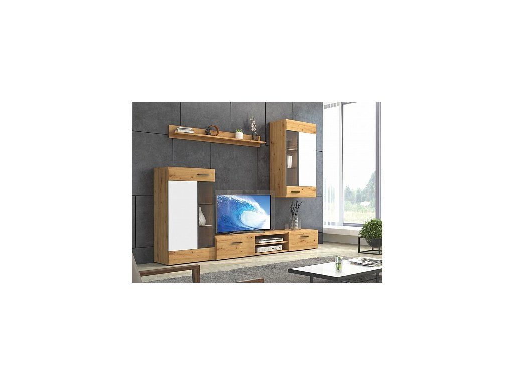 Obývací stěna TWINGO (L) je praktické řešení pro moderní obývací pokoj. Nabízí dostatek úložného prostoru a zároveň podtrhuje vzhled interiéru díky možnosti výběru z několika barevných variant. Vybírat můžete mezi čistým dekorem dub sonoma nebo jeho kombinací s bílými dvířky, která dodá nábytku svěží vzhled.