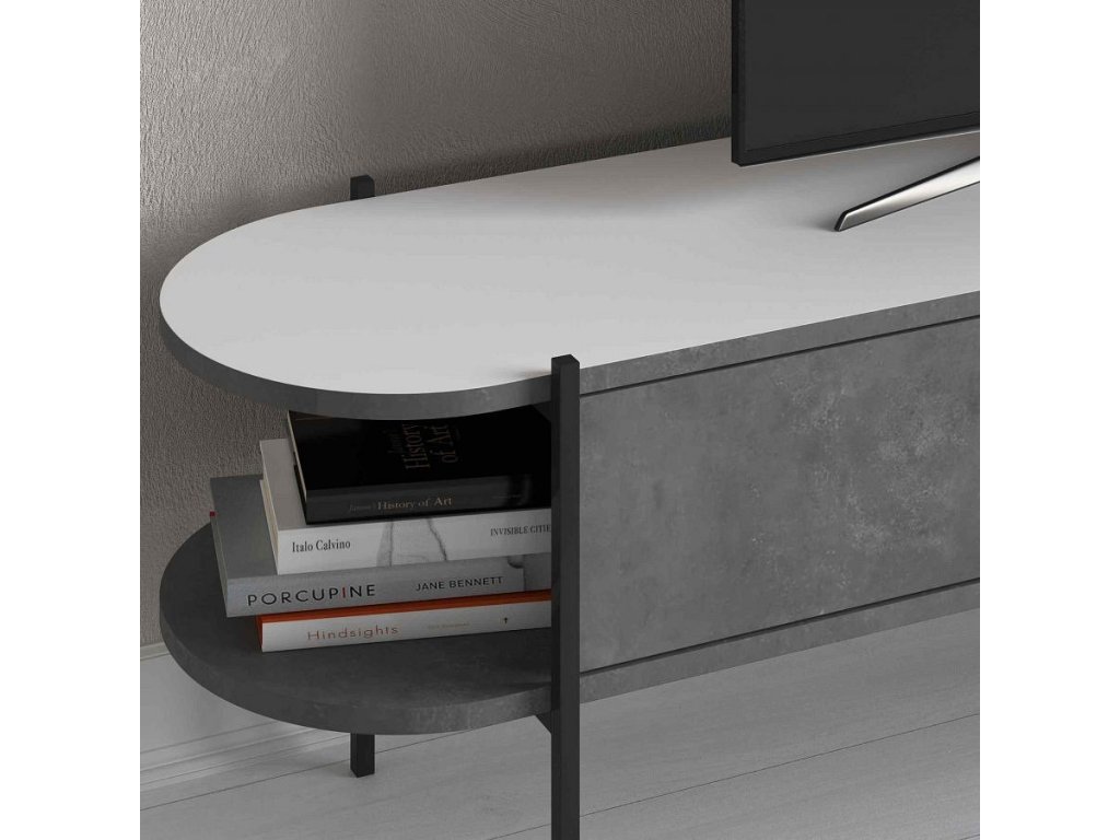 Oživte svůj obývací pokoj s TV stolem, který kombinuje šarm retro šedé s nepřekonatelnou čistotou bílé barvy. Dokonale laděný industriální a loftový design se stává středobodem každého moderního interiéru.
