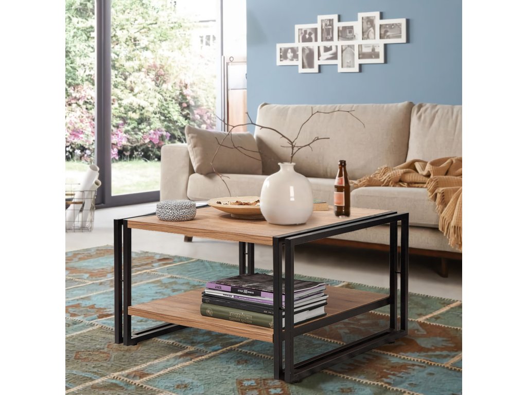 Kombinace borovicového dekoru a černých kovových prvků dodává stolku moderní industriální vzhled, který skvěle doplní interiér vašeho obývacího pokoje. Dodává se v demontovaném stavu s přiloženým návodem na snadné sestavení.