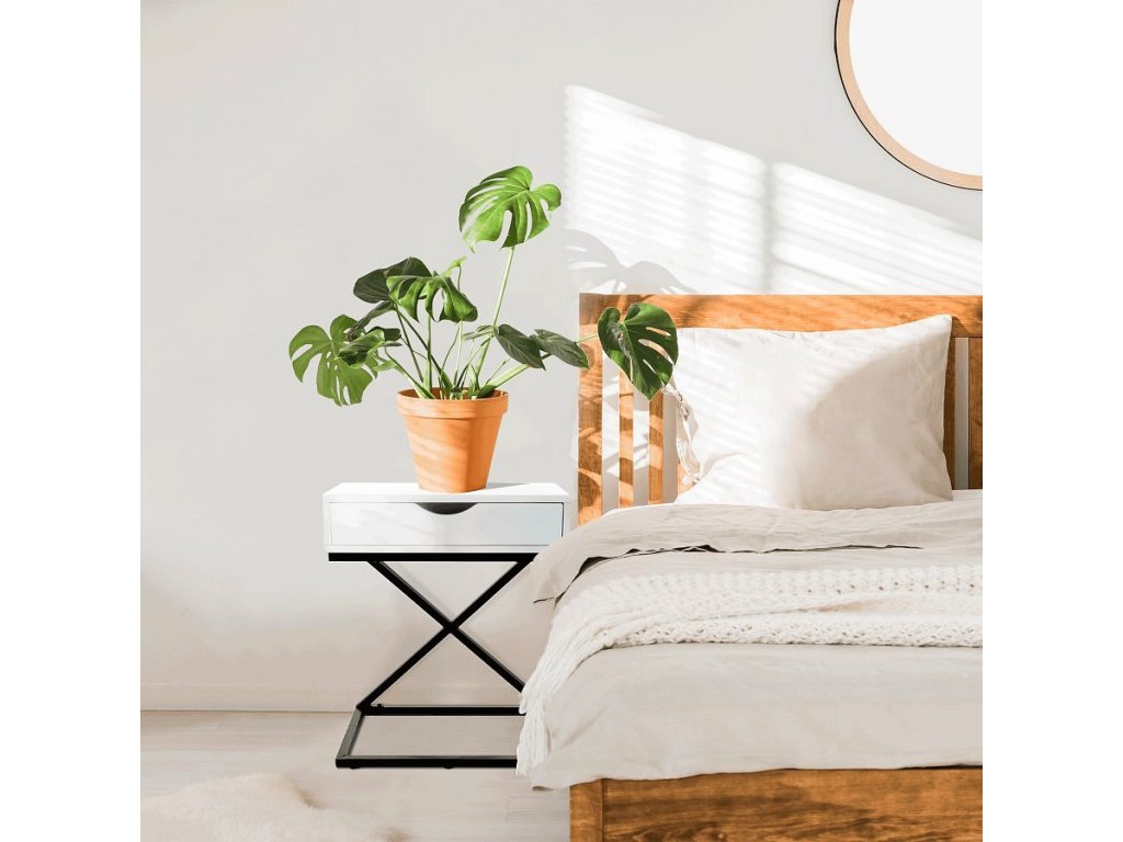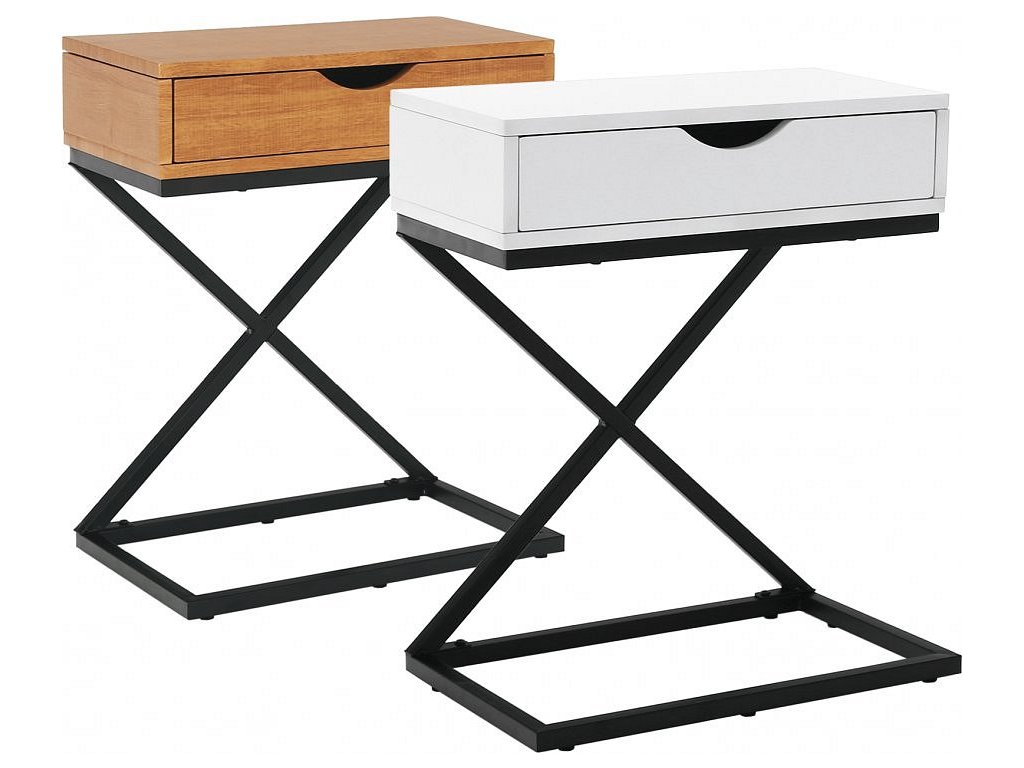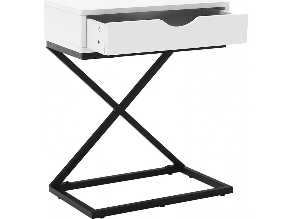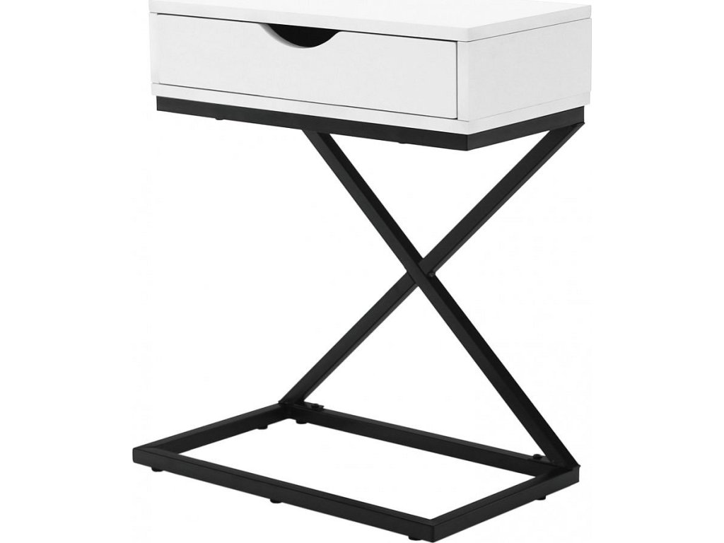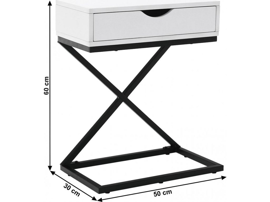 Odkládací, noční stolek VIRED se zásuvkou, bílá/černý kov