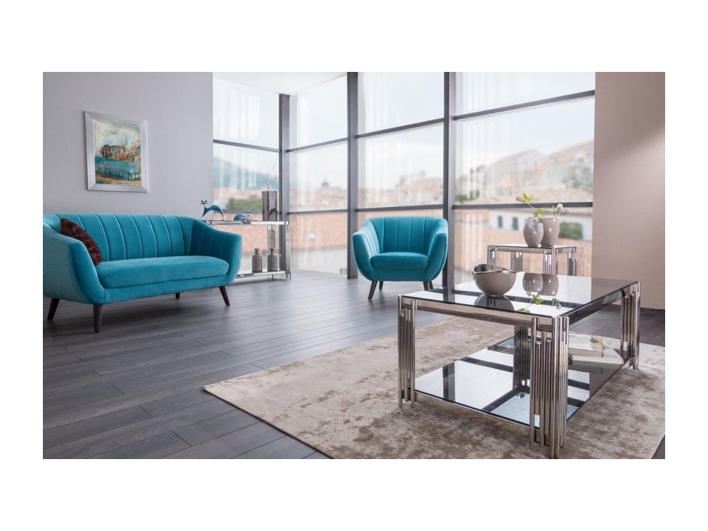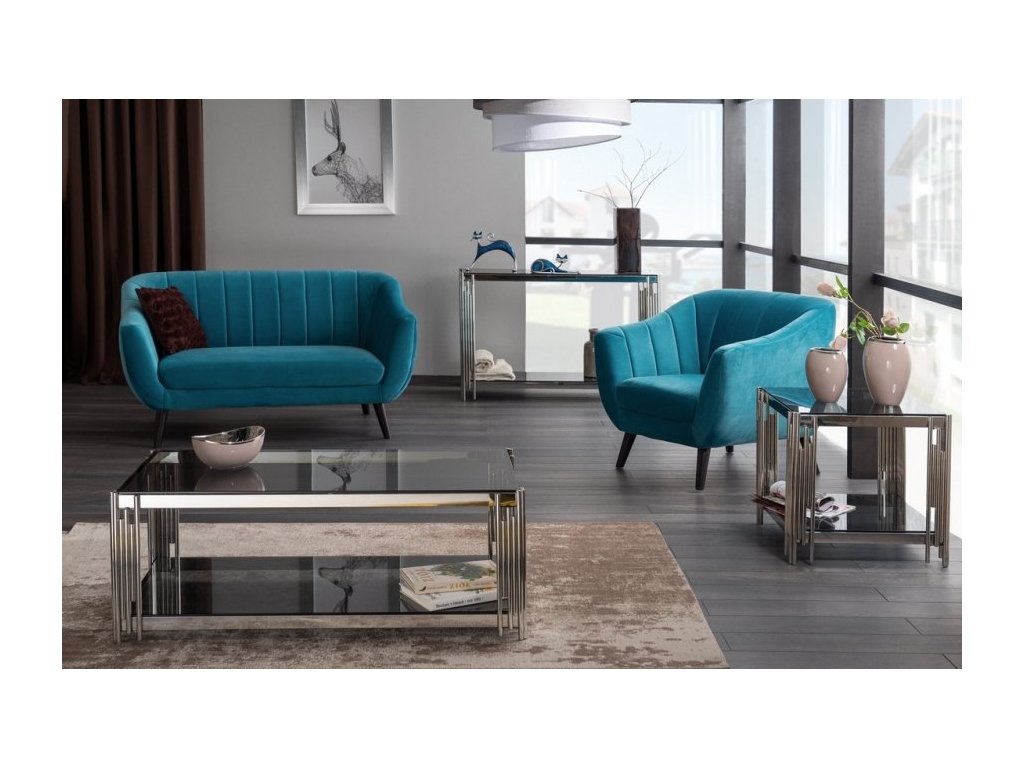 CASA 11309 Konzolový stolek v moderním stylu glamour. Konstrukce je z kovu v barvě chróm, odkládací desky jsou z tvrzeného kouřového skla. Tento stylový kousek v netradičním designu se bude vyjímat v každém interiéru. Dodáváme v demontovaném stavu.