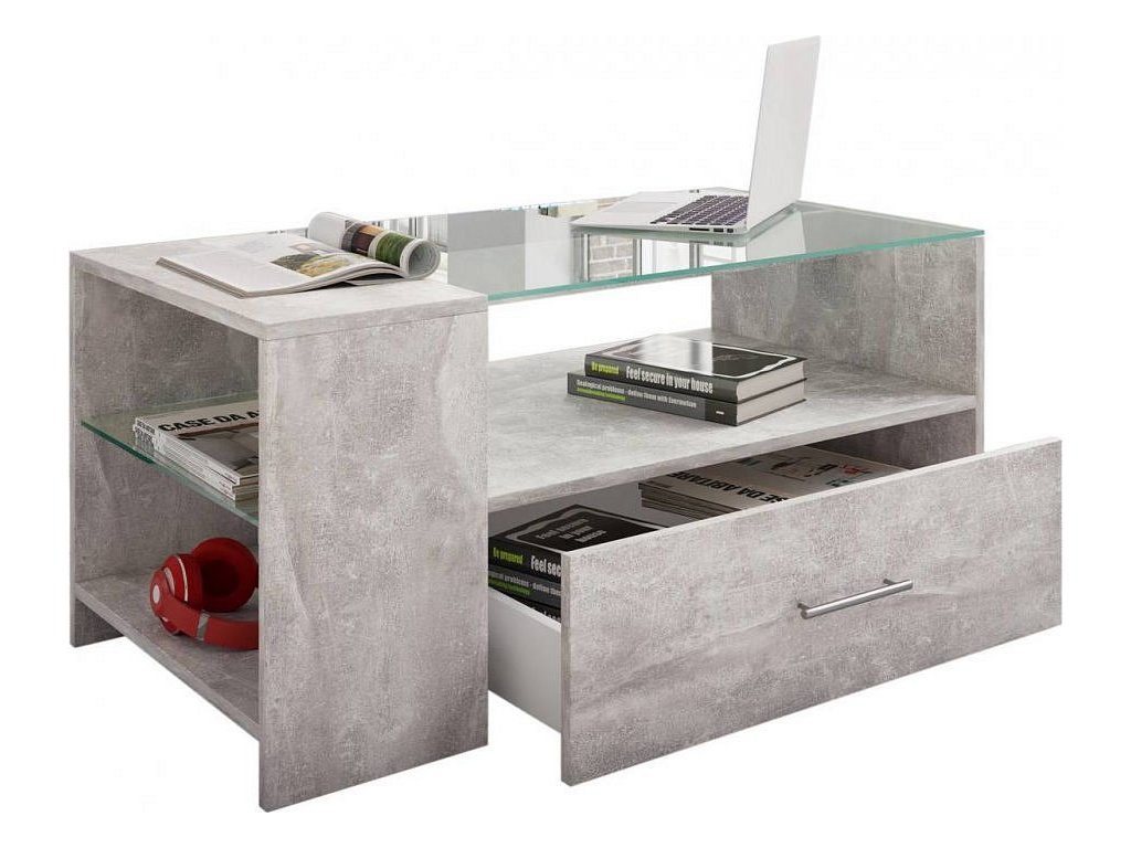 Hlavní vlastnosti: - Speciální kus nábytku do obývacího pokoje - Tři otevřené přihrádky a jedna zásuvka poskytují dostatek úložného prostoru - Kvalitní a stabilní zpracování - Imitace struktury dřeva a bezpečnostní sklo ESG - Rozměry cca V 45 x Š 100 x H 50 cm Nábytek VCM "Tindala" v imitaci textury dřeva je univerzální kus nábytku pro téměř každý obývací pokoj. Dvě otevřené přihrádky po stranách, otevřený úložný prostor pod deskou stolu a hladce vysouvající zásuvka poskytují dostatek úložného prostoru pro dokonalý pořádek. Důraz na detail dělá z nábytku VCM něco velmi speciálního.