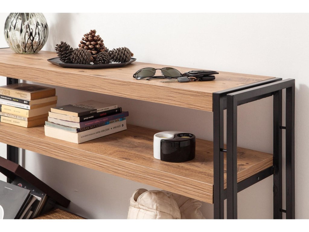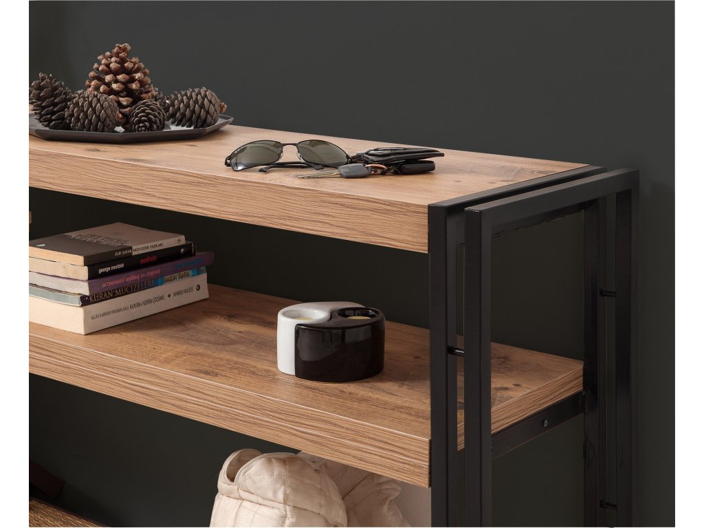 Konzolový stolek přináší do vašeho domova moderní industriální styl a praktické využití. Díky kombinaci dekoru borovice a černých kovových prvků je ideální volbou pro předsíň i obývací pokoj.