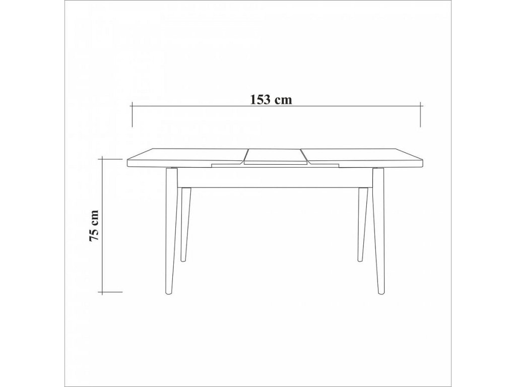 - Rozměry otevřeného stolu: Šířka: 153 cm, Výška: 75 cm, Hloubka: 75 cm