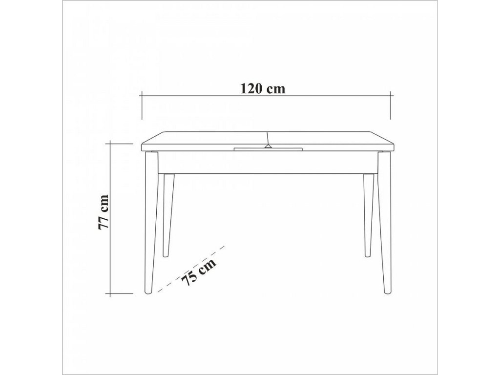 - Rozměry stolu: Šířka: 120 cm, Výška: 77 cm, Hloubka: 75 cm