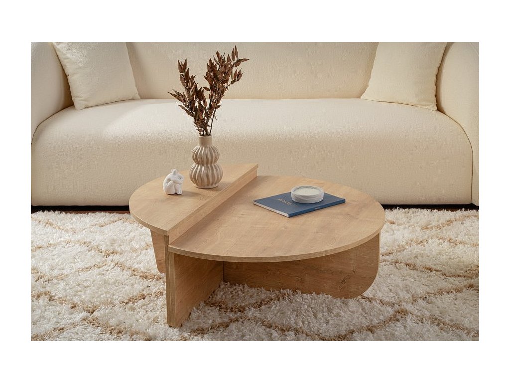 Proměňte svůj obytný prostor s naším úžasným dubovým konferenčním stolkem. Vyrobený ze 100% melaminově potažené dřevotřísky, tento kus vyzařuje eleganci a sofistikovanost. Sytá dubová barva dodá každé místnosti teplo a kouzlo a vytvoří útulnou atmosféru, která vybízí k relaxaci a pohodlí.
