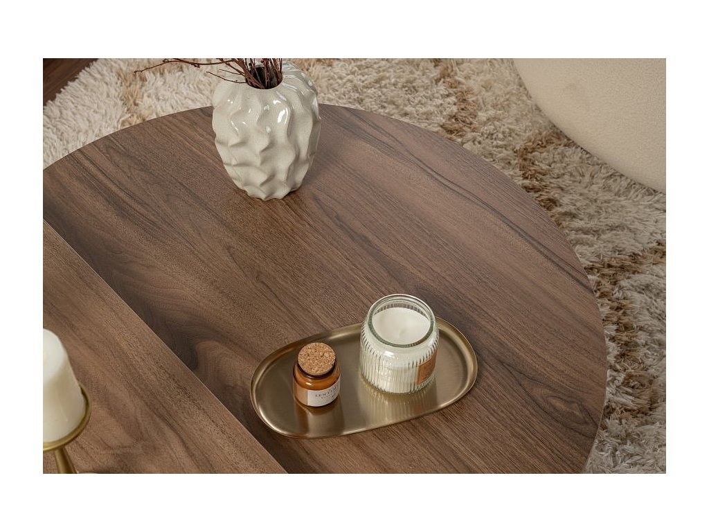 Proměňte svůj obytný prostor s naším úžasným konferenčním stolkem, vyrobeným ze 100% melaminově potažené dřevotřísky pro odolnost a styl. Elegantní design a moderní barevná kombinace ořechu a bílé okamžitě pozvednou váš domov a vytvoří pro vás i vaše hosty teplou a příjemnou atmosféru.