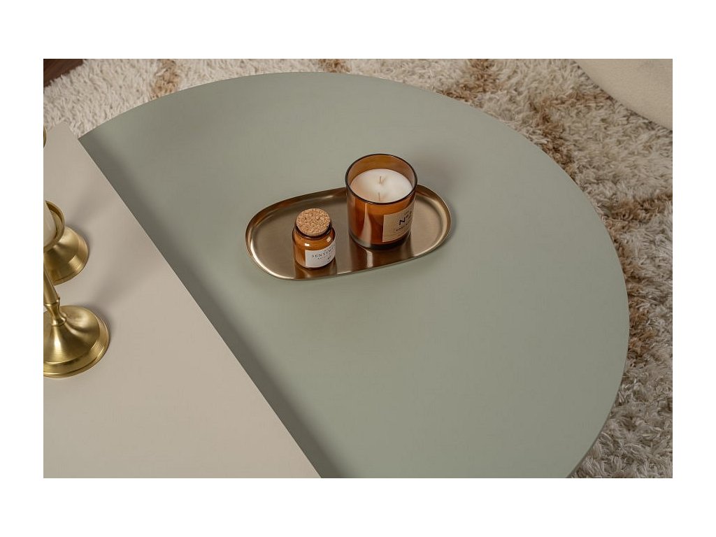 Orion dvoudílný konferenční stolek, popelavě zelná / pískovec