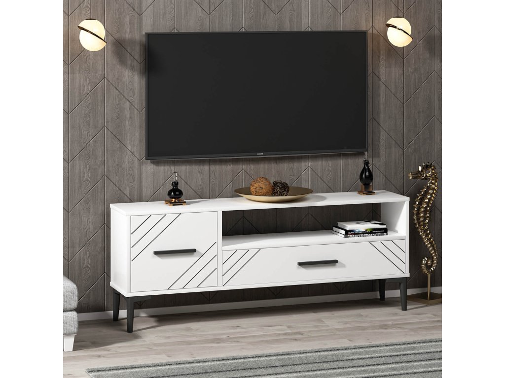 Vyroben z kvalitního LTD materiálu s tloušťkou 18 mm, TV stolek je zárukou pevnosti a dlouhé životnosti. Stolek je vybaven skříňkou s jedněmi dvířky a jednou zásuvkou, což zajišťuje dostatečný prostor pro uložení vašich multimediálních zařízení a dalších potřebností. Plastové úchytky umožňují snadné otevírání a zavírání, zatímco jeho minimalistický design se hodí do každého moderního interiéru.