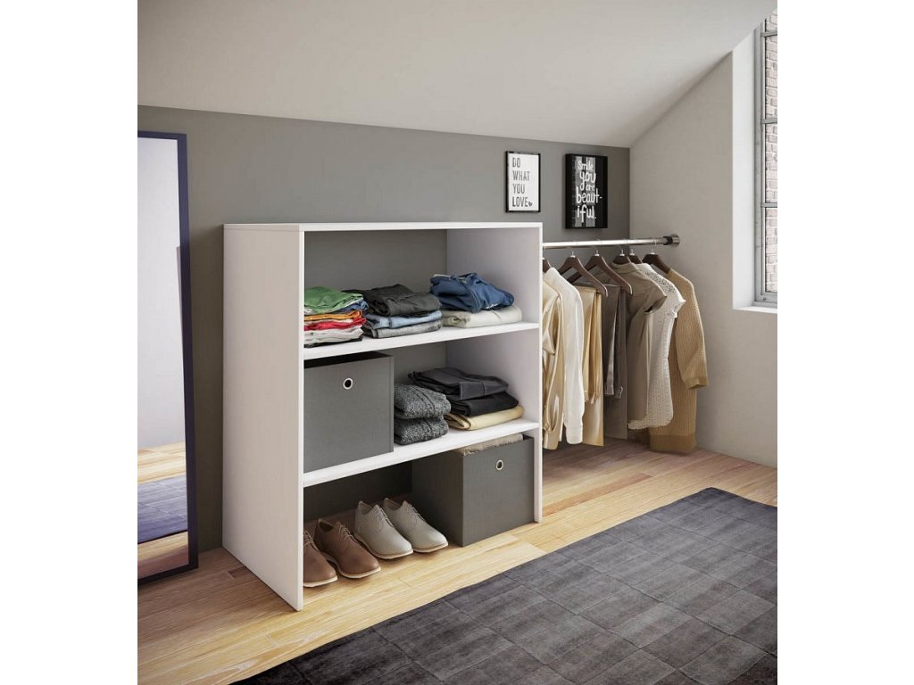 Police je naprostý prostorový zázrak pro pořádek, který navíc nabízí pěkný přehled o všech oděvech. Součástí dodávky je variabilní tyč na oblečení, jejíž délku lze nastavit v rozmezí 70-110 cm podle potřebného prostoru. Police je stohovatelná, a proto ji lze kombinovat s další policí. S řadou Dacho si můžete vytvořit celou šatní skříň.