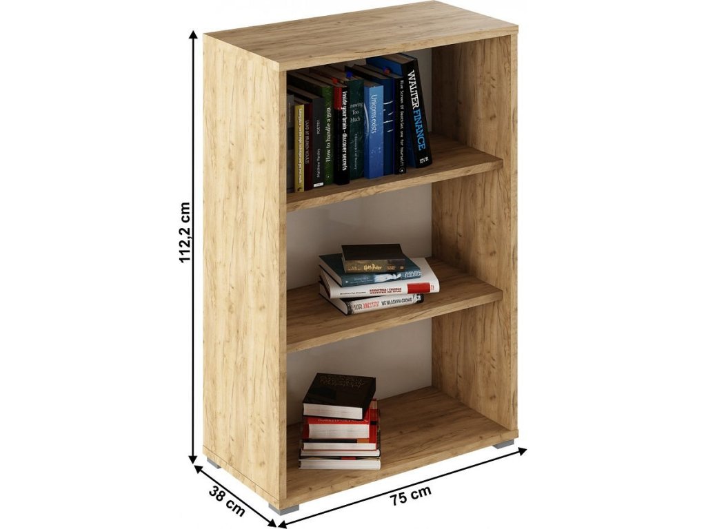 Otevřený regál RIOMA TYP 4 Barevné provedení: dub artisan / bílá Materiál: DTD laminovaná Rozměry (ŠxHxV): 75x38x112,2 cm Tloušťka materiálu: 22 mm Dodávané v demontu