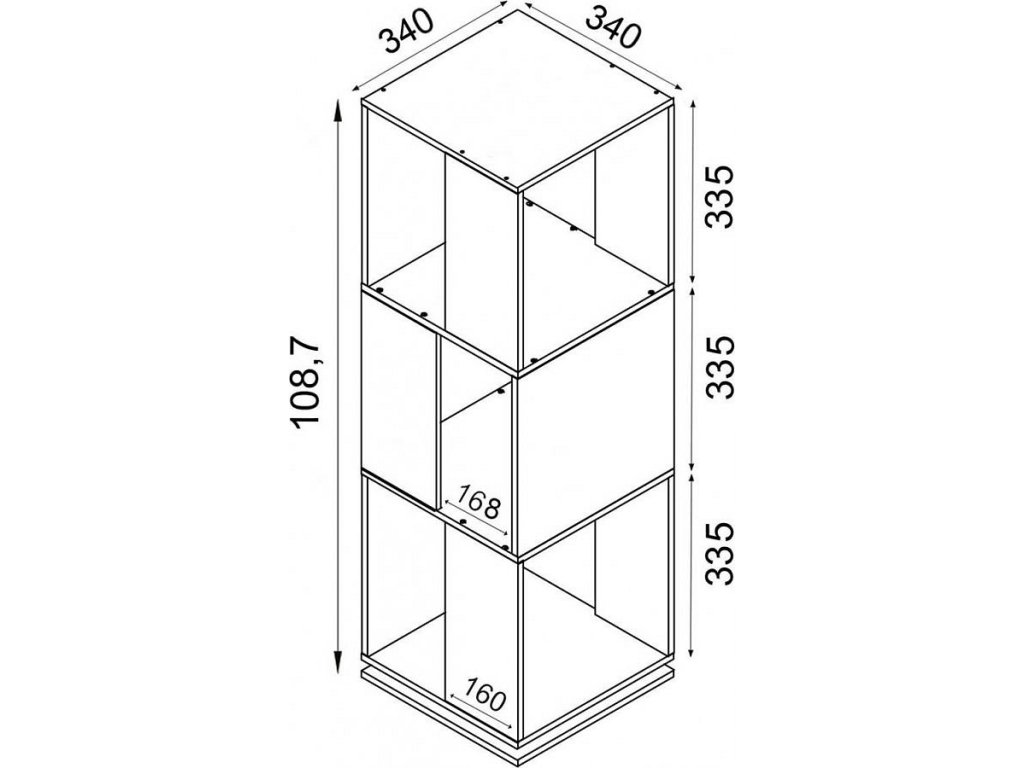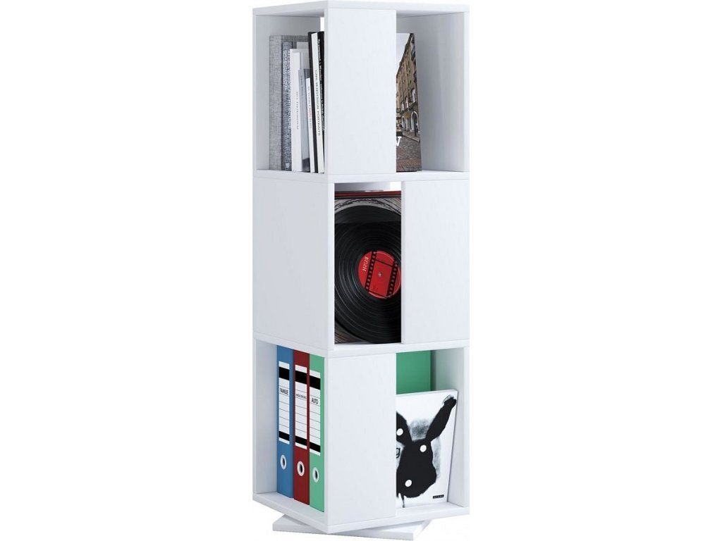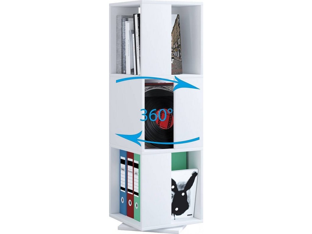 Hlavní vlastnosti: - Otočný nábytek - Ideální pro spisy, kancelářské potřeby, knihy, desky, CD nebo DVD - 3 otevřené přihrádky - Imitace textury dřeva - Rozměry police cca. V. 109 x Š. 34 x H. 34 cm - rozměry každé přihrádky cca. V. 33 x Š. 33 x H. 33 cm Kostra je vyrobena z imitace struktury dřeva a je otočná, takže přihrádky jsou přístupné ze všech stran.