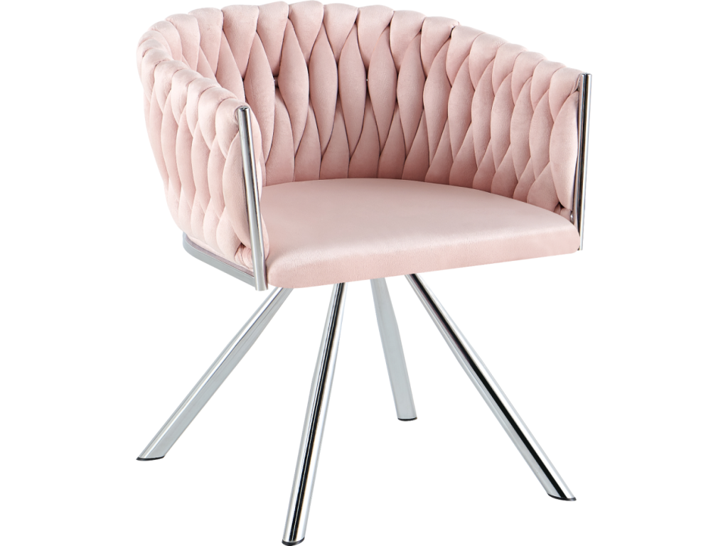 Otočné jídelní křeslo, pudrově růžová Velvet látka/chrom, HELIN