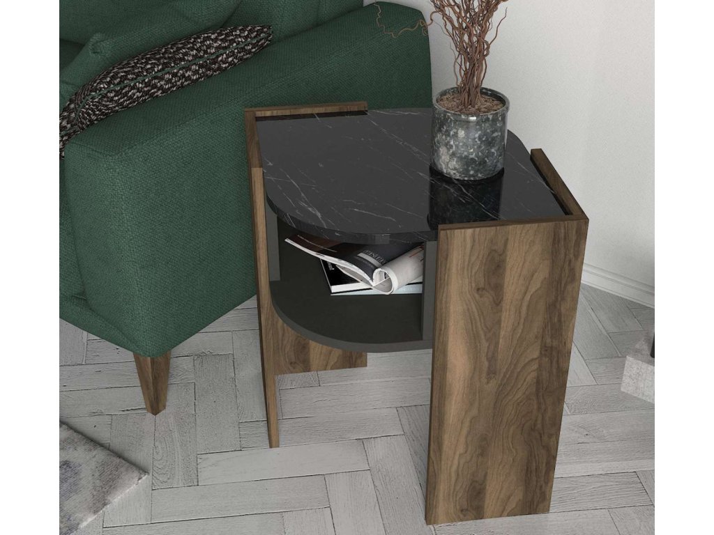 Představujeme vám - elegantní a luxusní příruční stolek, který je dokonalým doplňkem pro váš obývací pokoj. Tento stolek je vyroben z kvalitního LTD materiálu a vyniká kombinací ořechu a mramoru, což mu dodává sofistikovaný a přitažlivý vzhled.