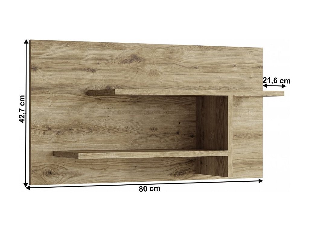 Panel DORSI 80 Materiál: DTD laminovaná Barva: dub navarra Rozměry (ŠxHxV): 80x21,6x42,7 cm Tloušťka materiálu: 1,6 cm Nosnost: 3 kg Otevřený úložný prostor Moderní design Dodáváno v demontu