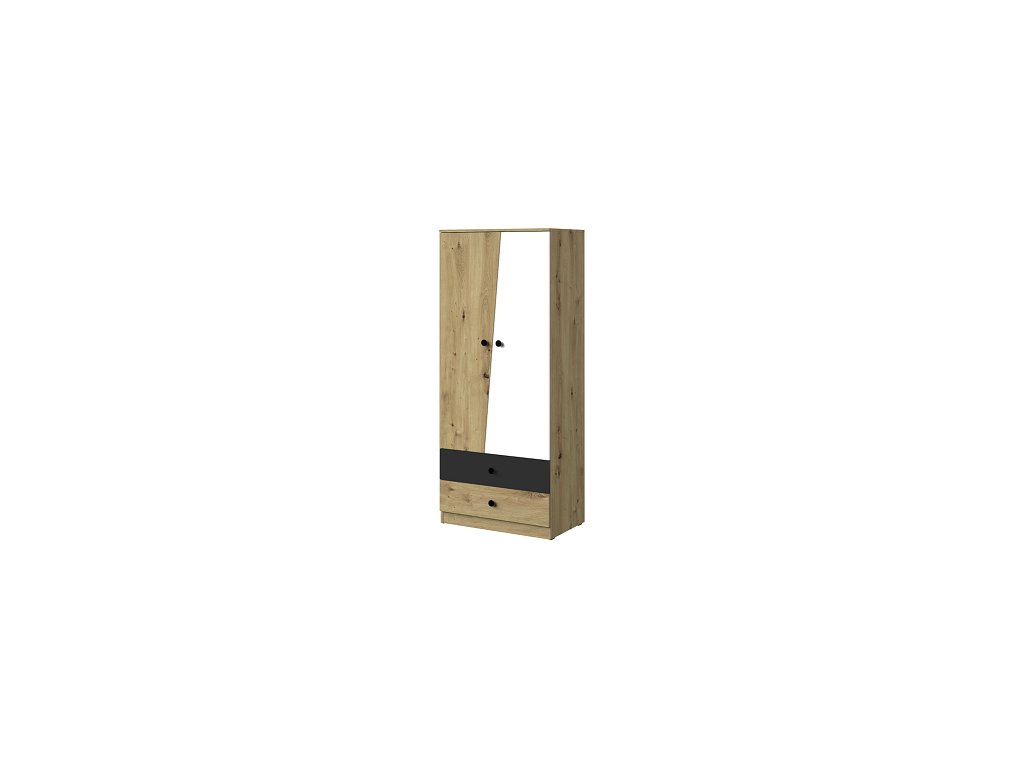PARADISE 01- Skříň 2D2S -lamino Dub artisan/ bílá mat/1x šuplík černý mat , úchyt černá(NERO01=5balíků)(DO) (K150-Z)