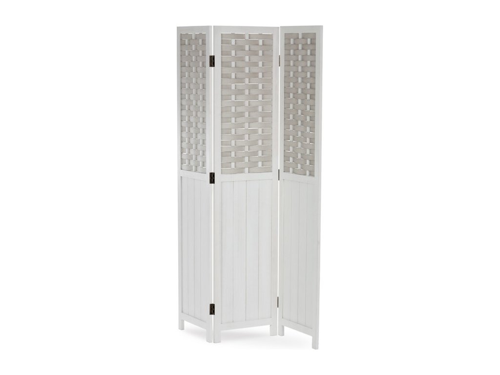 Třídílný paraván z masivního smrkového dřeva v bílé barvě nabízí praktické řešení pro rozdělení prostoru či vytvoření soukromí v interiéru. Každý díl je tvořen pevnou rámovou konstrukcí s dolní částí z masivních PVC lamel a horní částí s proplétaným vzorem, který dodává lehkost a zajímavý vizuální efekt. Díky pevním kovovým pantům lze jednotlivé díly snadno skládat a nastavit do požadovaného úhlu, což zajišťuje stabilitu a variabilitu použití. Povrchová úprava bílým nátěrem podtrhuje přírodní charakter dřeva a umožňuje snadnou údržbu. Paraván je vhodný pro použití v domácnostech i komerčních prostorách, kde oceníte kombinaci funkčnosti a decentního designu. Rozměr jednoho dílu je 40x171 cm.