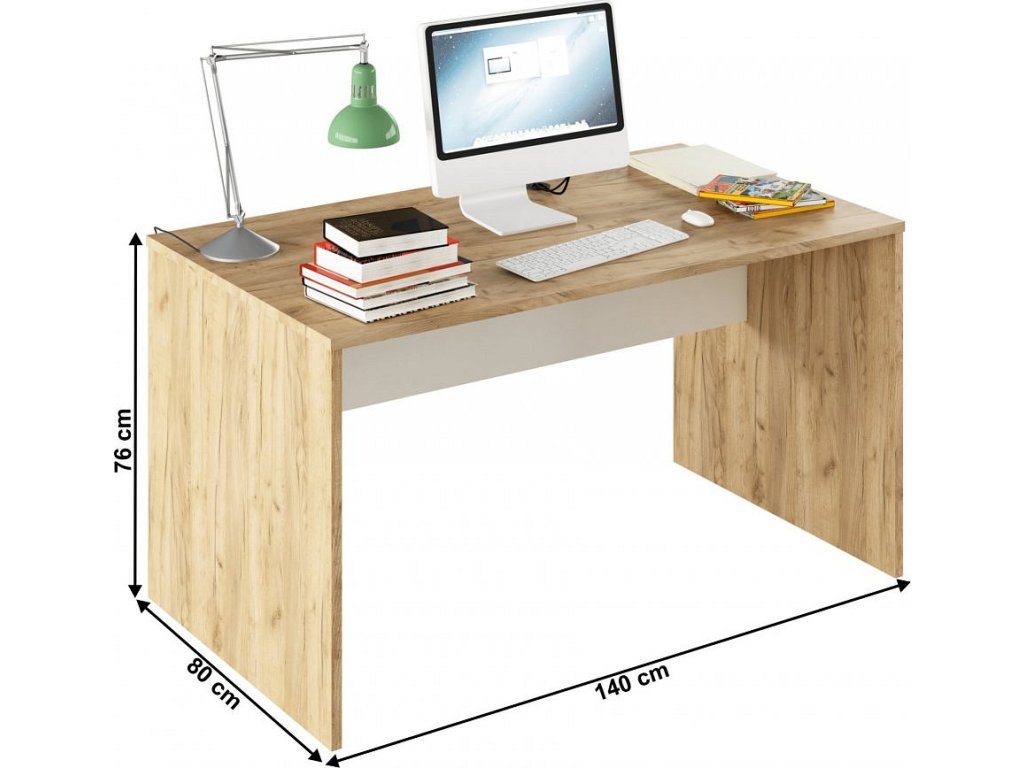 Psací stůl RIOMA TYP 11 Barevné provedení: dub artisan/bílá Materiál: DTD laminovaná Rozměry (ŠxHxV): 140x80x76 cm Tloušťka materiálu: 16/22 mm Dodávané bez kontejneru, kontejner je možné si dokoupit Dodávané v demontu.