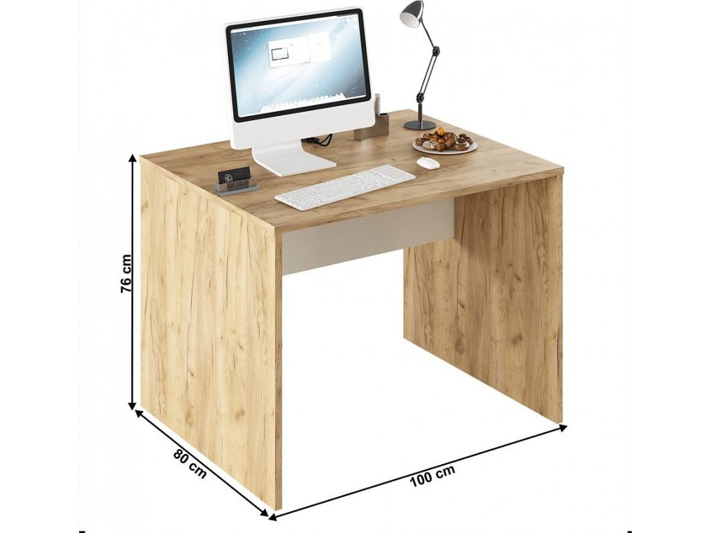 Psací stůl RIOMA TYP 12 Barevné provedení: dub artisan/bílá Materiál: DTD laminovaná Rozměry (ŠxHxV): 100x80x76 cm Tloušťka materiálu: 16/22 mm Dodávané v demontu