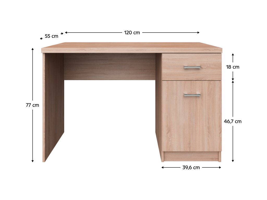 PC Stůl 1D1S/120 TOPTY TYP 36 Materiál: DTD laminovaná Barva: dub sonoma Rozměry (ŠxHxV): 120x55x77 cm Se šuplíkem Se skříňkou Dodáváno v demontu.