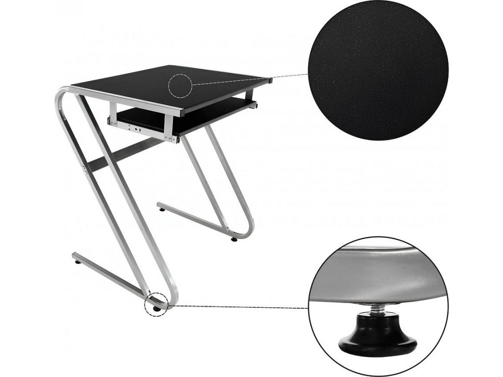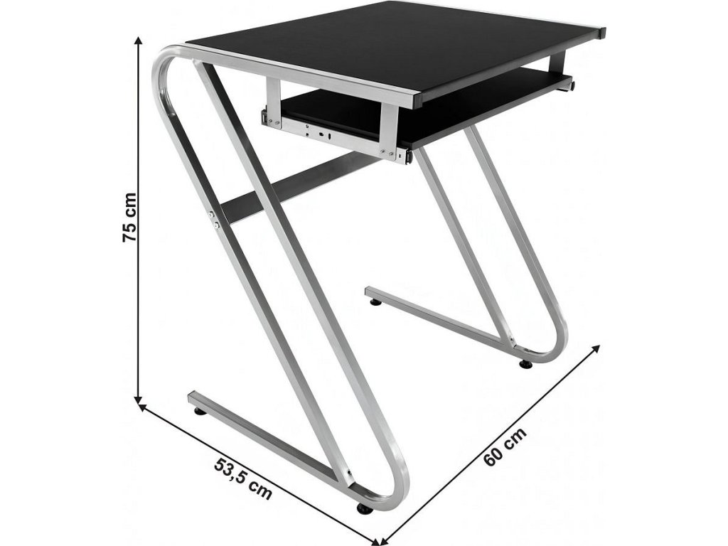 PC stůl s výsuvem na klávesnici, materiál: kov + MDF, provedení: černá + stříbrná, rozměry ŠxHxV: 60x53,5x75 cm.