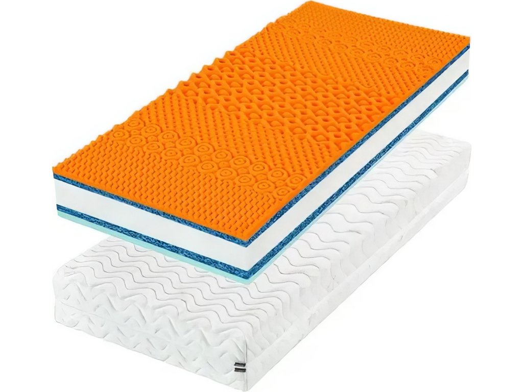 CASA 63018 Sendvičová sedmizónová ortopedická matrace s tužší a středně tuhou stranou. Matrace si zachovává svoji přirozenou tuhost a díky tomu, že jsou paměťové vrstvy