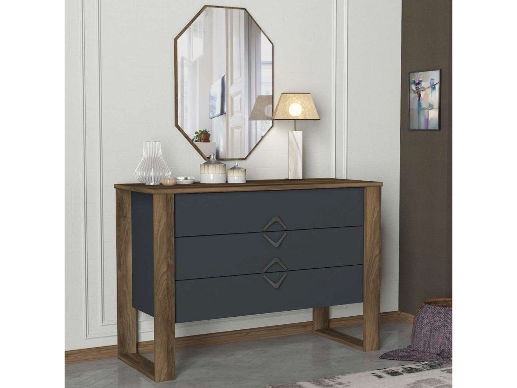 PIRO šuplíková komoda s nástěnným zrcadlem, ořech/antracit