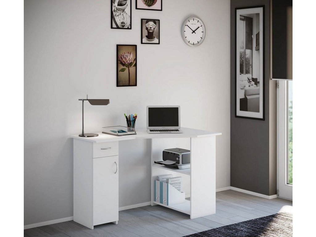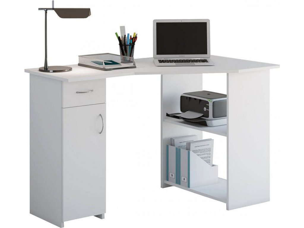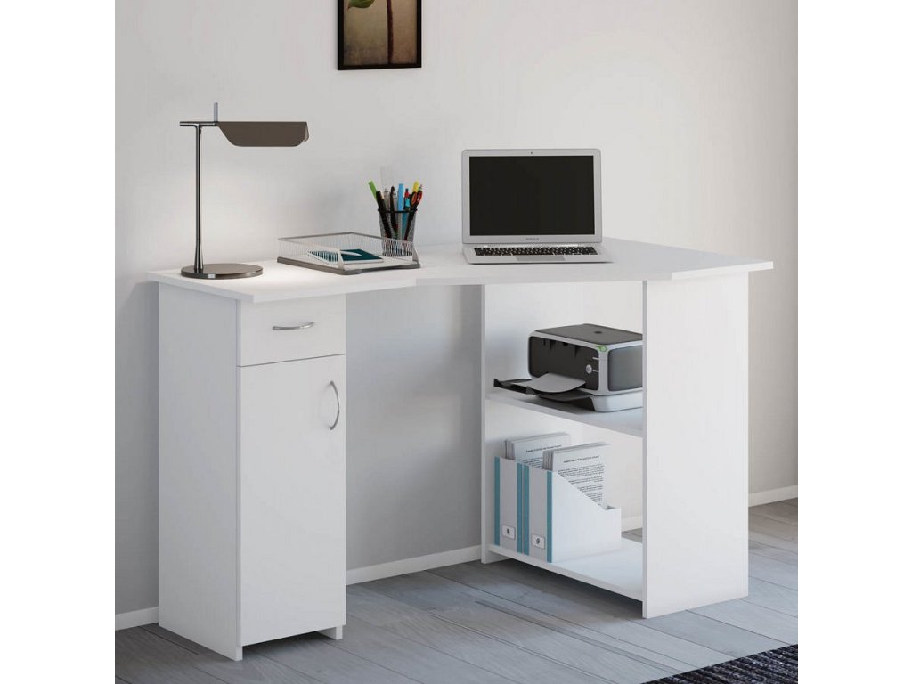 Rohový počítačový stolek se spoustou úložného prostoru. Nabízí velkorysou pracovní plochu, 1 zásuvku, uzavíratelnou skříňku a 2 velké otevřené přihrádky s dostatkem místa na šanony, dokumenty, tiskárnu a další.