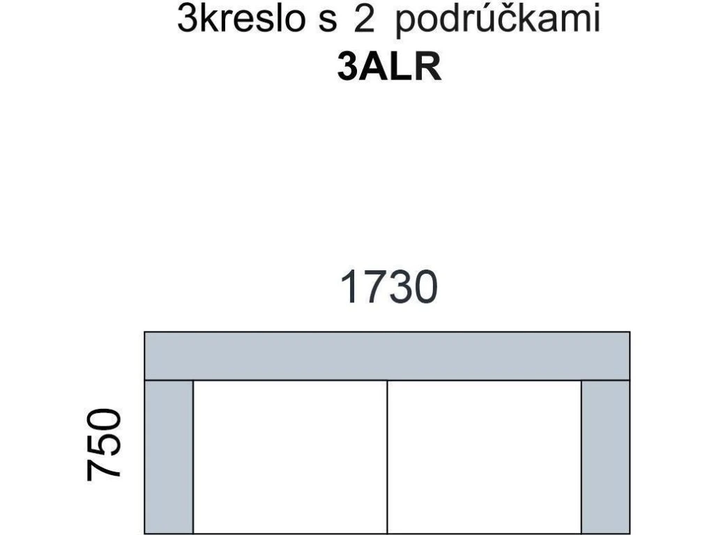 Sezení: výška 45cm, hloubka 50cm, šířka 139cm, šířka područky 17cm