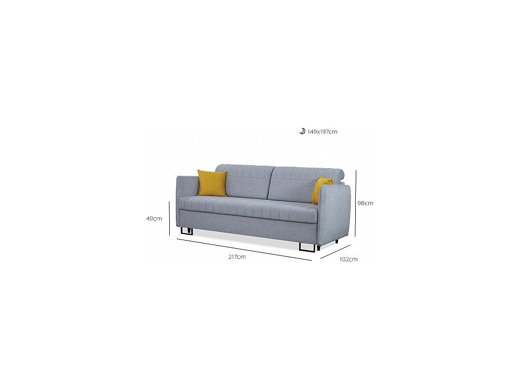 Rozkládací mechanismus je navržen tak, aby manipulace byla rychlá a nenáročná. Plocha na spaní po rozložení činí 149 × 197 cm, což postačí pro dvě osoby. Díky bonellovým pružinám a kvalitní pěnové vrstvě v sedáku je zajištěna rovnoměrná podpora těla a dlouhodobě stabilní komfort. To z ní činí pohovku vhodnou nejen pro občasné, ale i častější spaní.