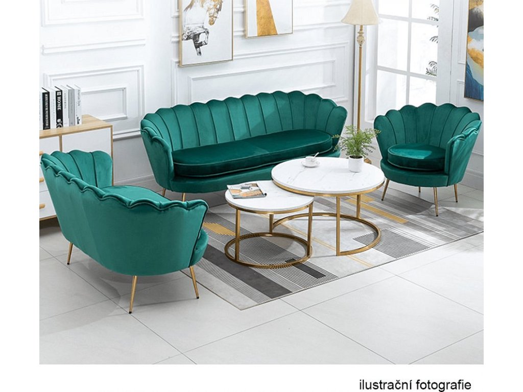 Pohovka NOBLIN, smaragdová Velvet/gold chrom-zlatý