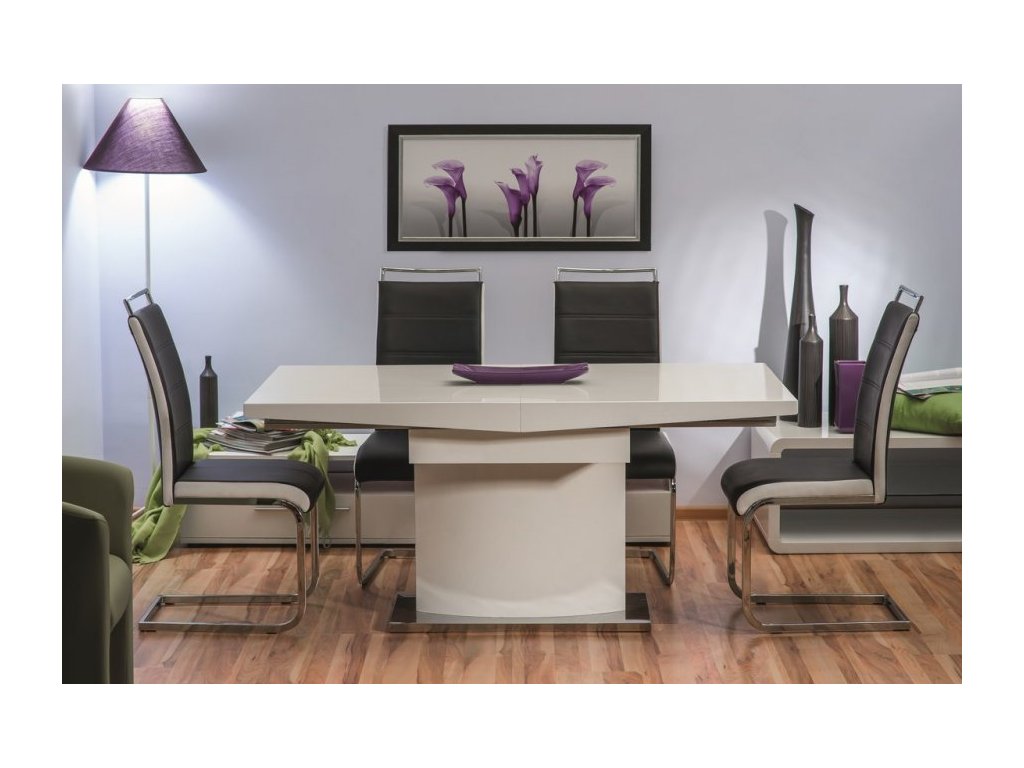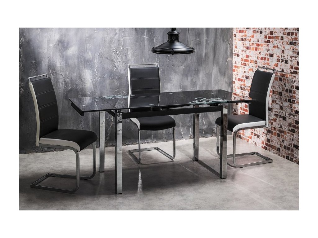 CASA 11368 Elegantní čalouněná židle pohupovací s ergonomickým tvarem. Zajímavě řešená kovová konstrukce je pochromovaná, čalounění je z ekokůže v barevném provedení - černá/bílá. Židle se hodí ke stolům, které naleznete v naší uvedené nabídce.