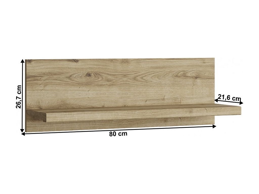 Police Dorsi 80 Materiál: DTD laminovaná Barva: dub navarra Rozměry (ŠxHxV): 80x21,6x26,7 cm Tloušťka materiálu: 1,6 cm Nosnost: 3 kg Otevřený úložný prostor Moderní design Dodáváno v demontu