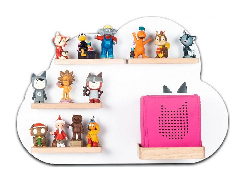 BOARTI - police pro Toniebox a cca 25 Tonies. Designér vyvinul tuto nástěnnou polici pro všechny přátele nebes. Nástěnná police ve tvaru mraku promění dětský pokoj v zemi snů a nejenže dětem rozzáří oči. BOARTI s jedinečným designem - to je okamžitě jasné každému, kdo vlastní Toniebox a kolekci! Jasná nástěnka do dětského pokoje. Úhledná a stylová: zde nacházejí své místo nabíjecí stanice a figurky. Už žádné poletující figurky. Designér standardně integroval kovové lišty, které figurky bezpečně upevní k poličce a zajistí, že zůstanou na místě. BOARTI je značka rodinné firmy VCM, která se od 70. let 20. století specializuje na design, výrobu a distribuci nábytku s férovým poměrem cena/výkon a již zkrášlila miliony domácností.