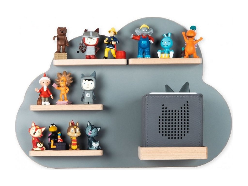 BOARTI - police pro Toniebox a cca 25 Tonies. Designér vyvinul tuto nástěnnou polici pro všechny přátele nebes. Nástěnná police ve tvaru mraku promění dětský pokoj v zemi snů a nejenže dětem rozzáří oči. BOARTI s jedinečným designem - to je okamžitě jasné každému, kdo vlastní Toniebox a kolekci! Jasná nástěnka do dětského pokoje. Úhledná a stylová: zde nacházejí své místo nabíjecí stanice a figurky. Už žádné poletující figurky. Designér standardně integroval kovové lišty, které figurky bezpečně upevní k poličce a zajistí, že zůstanou na místě. BOARTI je značka rodinné firmy VCM, která se od 70. let 20. století specializuje na design, výrobu a distribuci nábytku s férovým poměrem cena/výkon a již zkrášlila miliony domácností.