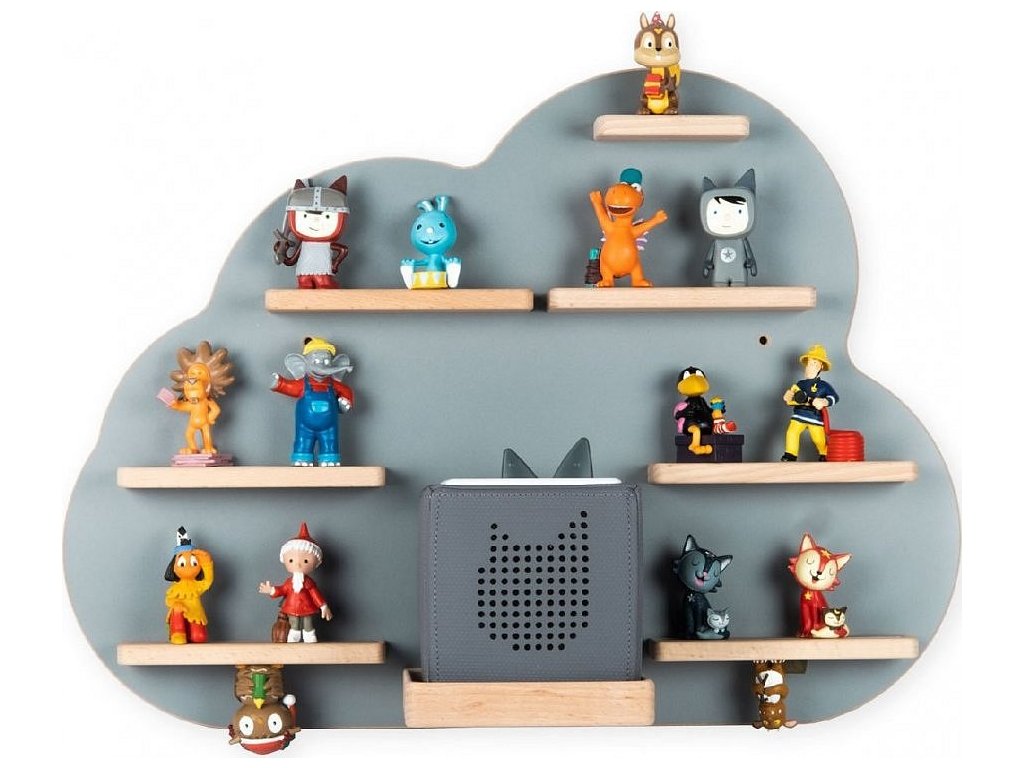 BOARTI - police pro Toniebox a cca 43 Tonies. Designér vyvinul tuto nástěnnou polici pro všechny přátele nebes. Nástěnná police ve tvaru mraku promění dětský pokoj v zemi snů a nejenže dětem rozzáří oči. BOARTI s jedinečným designem - to je okamžitě jasné každému, kdo vlastní Toniebox a kolekci! Jasná nástěnka do dětského pokoje. Úhledná a stylová: zde nacházejí své místo nabíjecí stanice a figurky. Už žádné poletující figurky. Designér standardně integroval kovové lišty, které figurky bezpečně upevní k poličce a zajistí, že zůstanou na místě. BOARTI je značka rodinné firmy VCM, která se od 70. let 20. století specializuje na design, výrobu a prodej nábytku s férovým poměrem cena/výkon a již zkrášlila miliony domácností.