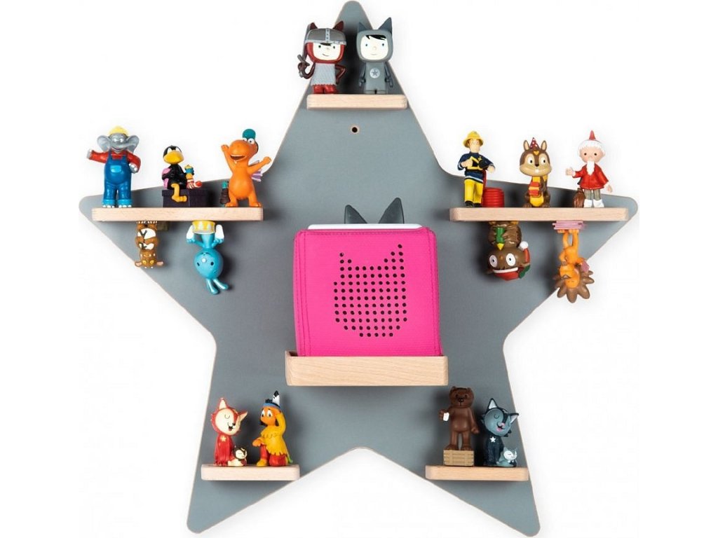BOARTI - police pro Toniebox a cca 35 Tonies. Designér vyvinul tuto nástěnnou polici pro všechny hvězdné kamarády. Nástěnná police přináší do dětského pokoje hvězdnou oblohu a nejenže dětem rozzáří oči. BOARTI s jedinečným designem - to je okamžitě jasné každému, kdo vlastní Toniebox a kolekci! Přehledná nástěnka do dětského pokoje. Úhledná a stylová: zde nacházejí své místo nabíjecí stanice a figurky. Už žádné poletující figurky. Designér standardně integroval kovové lišty, které figurky bezpečně upevní k poličce a zajistí tak, aby zůstaly na místě. BOARTI je značka rodinné firmy VCM, která se od 70. let 20. století specializuje na design, výrobu a prodej nábytku s férovým poměrem cena/výkon a již zkrášlila miliony domácností.